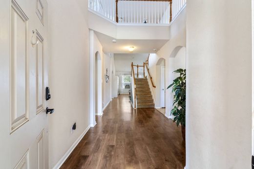This spacious 2 story home in Dove Crossing has so much to offer! The primary is downstairs as well as a secondary bedroom that makes a perfect mother in law suite with jacuzzi tub. The living room is spacious overlooking the in ground pool in the backyard. You can entertain guests in the formal dining next to the kitchen. The upstairs includes 3 bedrooms and a large game room. There are too many features to list, but the home includes: Dual A/C, Walk in Jacuzzi next to guest/mother in law bedroom downstairs, water softener conveys, double oven is also convection oven, pool vacuum and tools included, outdoor ceiling fans front and back, 5 full bedrooms, no HOA, keyless entry, video doorbell.