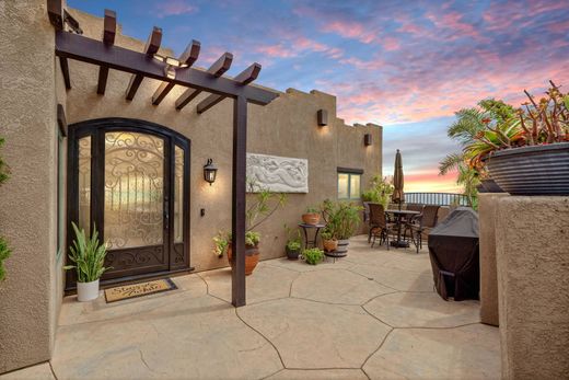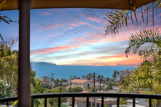 Just above downtown Ventura and the beach, this custom-built coastal home showcases panoramic ocean, island, and city-light views. With a coveted vacation rental permit, it's been enjoyed as both a second home and a successful short-term rental—offering flexibility, income potential, and the perfect turnkey getaway. The open-concept great room blends dining, kitchen, and living spaces, all opening to a view deck made for morning coffee or sunset cocktails. Quality craftsmanship is evident throughout—from the travertine-accented fireplace to Brazilian cherry hardwood floors, Pella windows and doors, custom alder cabinetry, and Viking appliances. A grand entry reveals soaring ceilings, a wrought-iron staircase, and natural light at every turn. On a generous 11,712 sq. ft. lot, this low-maintenance property is in impeccable condition and offers exciting potential to expand outdoor living space or develop the lower hillside level—maximizing the already breathtaking views.