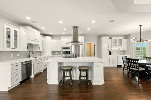 Welcome to 1058 Majestic Oaks Way in Majestic Oaks, the only gated community in Shelby County. Spanning nearly 8 acres of rolling countryside, this estate combines the elegance of Tuscan-inspired architecture with the relaxed beauty of Kentucky horse country. From the moment you arrive, the circular driveway makes a statement, leading to a residence where every detail has been thoughtfully designed. Since ownership, the sellers have enhanced this home with fresh paint throughout, an updated kitchen, completely renovated basement, new custom blinds, and high-end lighting. The first floor features a spacious primary suite with dual custom closets and a luxurious bath. The gourmet kitchen boasts an oversized island with cooktop, double ovens, wine cooler, and separate ice maker, making it perfect for both everyday living and entertaining. With 4 bedrooms, 3.5 baths, and a 3-car garage, there's room for everyone. There is also a bonus room upstairs that could easily be converted into an additional bedroom. The newly updated walk-out basement includes an office (or bedroom), a brand new custom bar, projection screen, and an additional flex space. Every bedroom features a custom closet, blending beauty with practicality. For equestrian enthusiasts, the property shines with a 2022-built barn that includes 4 stalls, a tack room, 50-amp service, and a covered trailer area. A separate driveway to the barn and new farm fencing, also added in 2022, increase both convenience and charm. Outdoor living is equally impressive with a heated in-ground pool for summer, an outdoor fireplace for cooler months, and a lower-level patio with fire pit for year-round gatherings. There is also a generator and a gas hookup for outdoor cooking. A new roof was installed in 2022, adding peace of mind to this already exceptional property. Discover luxury and serenity in the prestigious Majestic Oaks gated community in Simpsonville, KY. This exclusive neighborhood offers 7 miles of scenic horse trails, a 10-acre lake, and a peaceful setting for relaxation and recreation, all just minutes from I-64, shopping, and dining. Behind the gates, you'll find a rare combination of privacy, natural beauty, and a welcoming community spirit. Schedule your private tour today. This is Majestic Oaks living at its finest.