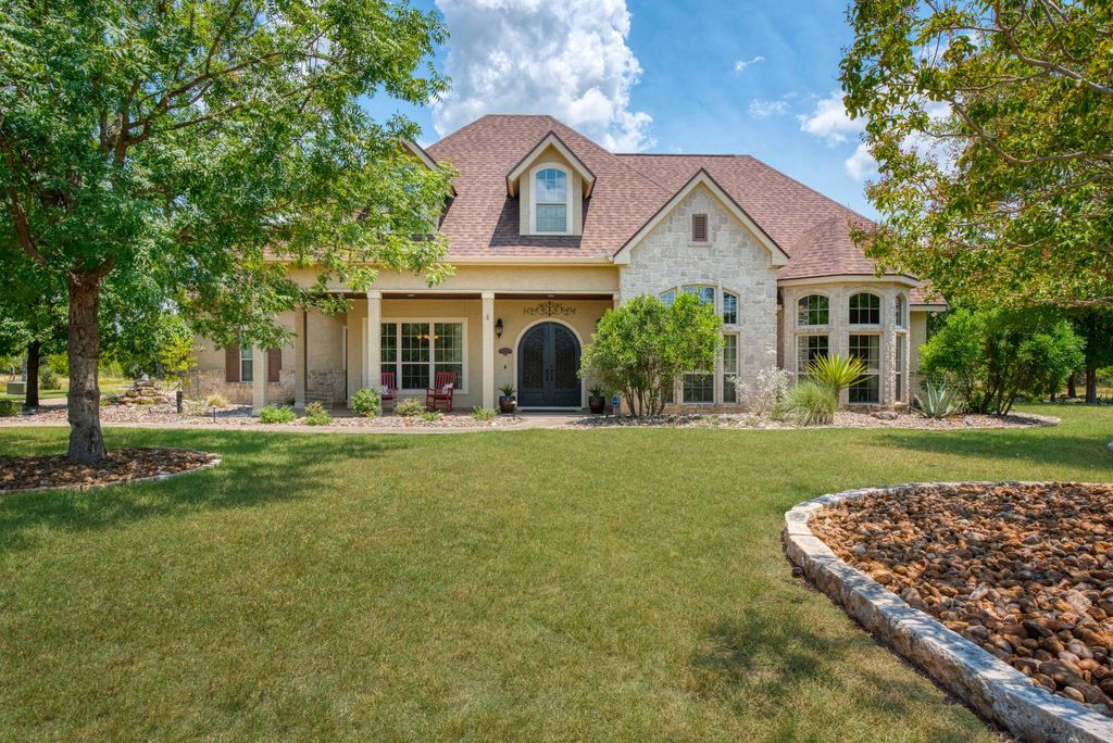Set on a scenic homesite with sweeping sunset views, this spectacular two-story home with rustic warmth and gorgeous upgrades is tucked in Bridlegate gated subdivision in Bandera, Texas- "The Cowboy Capital of the World." The property includes a huge 30' x 40' RV Barn, spectacular outdoor lighting, water catchment tank, solar screens, covered patio, pergola, green house/garden and awesome outdoor kitchen! Inside you will find an entertainer's kitchen with gas cooktop, double ovens, pot filler, tile backsplash, roomy island, built-in wine rack, and custom cabinets. Stereo system inside and out! Relax and enjoy your morning coffee in a sun room designed for easy living. The primary bedroom is private and downstairs, with two additional bedrooms upstairs plus a game room/flex room. Neighborhood amenities include Medina River Park, parks/playgrounds, pools, tennis and club houses. Photos are included above. Steeped in heart, heritage and natural beauty, this Bandera retreat is more than a place to live- It's a place to belong..