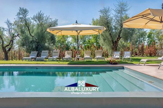 The outdoor areas are a real gem: an automatic gate and an illuminated driveway lead to a large private car park for six cars. A short descent leads to the farmyard between the villa and the cottage, where there is a panoramic garden with a large table perfect for outdoor lunches and dinners, two relaxation areas furnished with sofas and armchairs for enjoying an aperitif at sunset, and an ancient brick well now used as a cistern. There is also a barbecue, ideal for grilling under the stars.