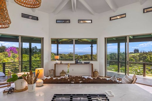 Beyond the end of a private driveway, 41 Leleaka Place offers rare privacy with expansive ocean views from nearly every room. The large, upgraded kitchen is centered in the home and designed for both cooking and gathering. Separated living spaces provide flexibility—ideal for extended family, guests, or creative uses, all enjoying the private tropical setting with ocean views. An oversized 4-bay garage with glass doors provides endless possibilities: a workout or yoga studio, workshop, hobby space, or secure parking. A large PV system with battery backup supports sustainable, off-grid style living while remaining fully connected to Hawaiian Electric. Set alongside a lush gulch and oriented toward the Maui north shore coastline, this property combines functionality, sustainability, and serenity—making it a unique Maui retreat. This is a residential CPR listing.