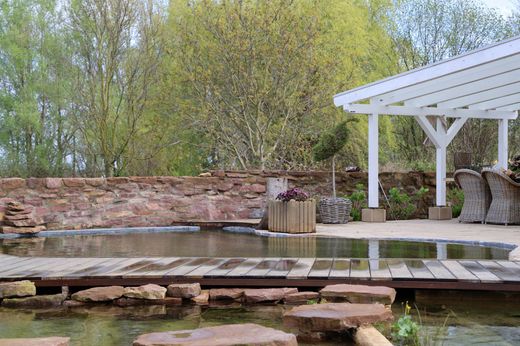 In a privileged location on the edge of a field in Weingarten (Baden), this stately ensemble of a residential house and outbuilding presents itself as a rare opportunity for the highest demands. Built in 2002 and extensively renovated in 2019, the property combines architectural clarity, privacy and well-dosed luxury. Around 213 m² of living space plus approx. 142 m² of usable space open up spacious representative areas and discreet retreats - favored by the designation as commercial space with residential rights for flexibly combinable living and working. Outside, the whirlpool house, tiled swimming pond, pergola and spacious terraces create a harmonious oasis of well-being surrounded by greenery. The garden has been lovingly designed and the view sweeps over fields and vines. An approx. 70 m² basement with office extends the options. A garage and seven outdoor parking spaces round off the property - a refuge that impressively combines style, comfort and sovereignty.