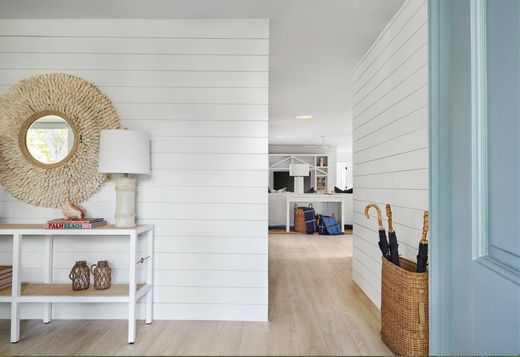 This Palm Beach | Hamptons Chic, beautifully renovated home is ready for those looking for a sophisticated, clean look on the water! Re-imagined as something casual, fresh and fun! Nickel Gap clad walls, furnished by Serena & Lily and splashed with blue and white! Enjoy the sunrise and sunset from your dock or pool. The location in SoSo is just a block from South Flagler, and all kinds of fine dining options in WPB and the island. Shopping, The Norton and Ann Norton Sculpture Museums are both in very close proximity, as is PBI.
