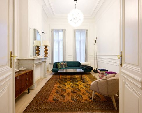 Ideally located near Place Stéphanie, this bourgeois house has a gross floor area of ± 350 m² and offers four bedrooms and a pleasant garden of ± 130 m². The house, which has been completely renovated, opens onto an entrance hall leading to the main floor with adjoining living areas overlooking the west-facing garden and characterised by high ceilings. Bathed in natural light, they include a living room, a dining room and a large fully equipped kitchen with a breakfast area. On the first floor is the master bedroom with dressing room, en-suite bathroom and study/boudoir. On the second floor are two adjoining rooms that could be used as a bedroom and study room, with a separate kitchen and large terrace. On the third floor is a bedroom with mezzanine and shower room and a bedroom with bathroom. On the lower floor is a bedroom and shower room. Others: lift, blinds and curtains, shutters on the front façade, alarm system, laundry room, water softener, cellars, two parking spaces available as an optional extra for EUR 300. PEB: E Place Stéphanie is ideally located not far from the center of Brussels, it is surrounded by shops and businesses, it offers transport facilities and easy access to the surrounding communities. For any further information, please contact Laurence Ballaux on +32 (0) 2 640 08 01.