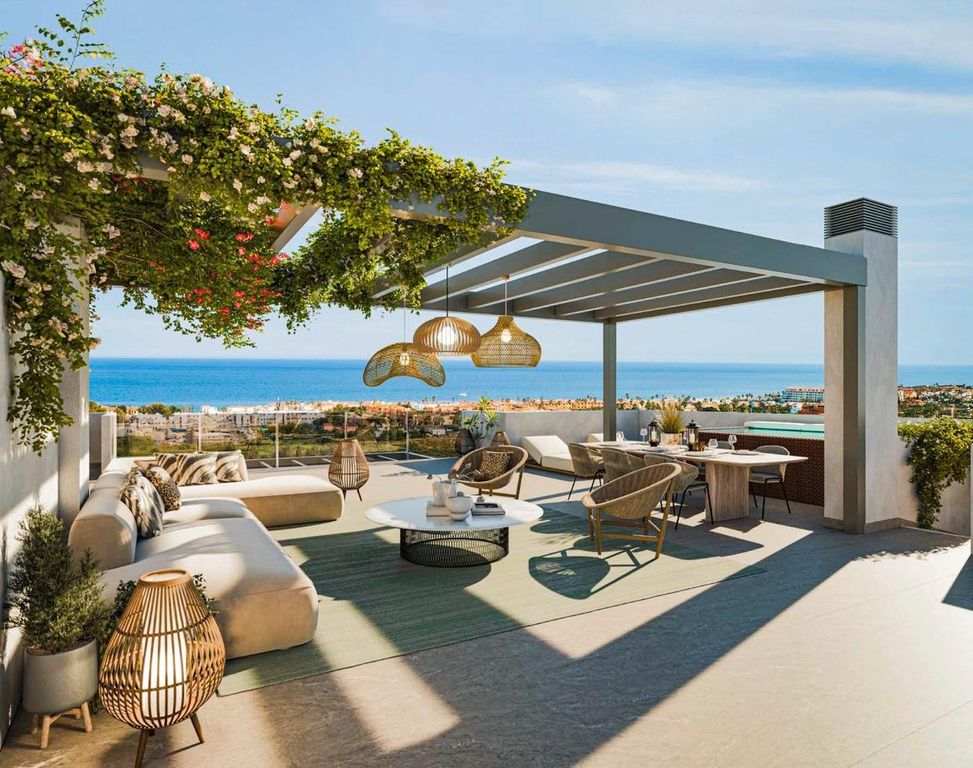 This contemporary penthouse apartment is located in a boutique new development in Casares Costa, thoughtfully designed to blend modern Mediterranean living with exceptional outdoor space. Featuring 3 bedrooms and 2 bathrooms, the residence includes a rooftop solarium with an optional private plunge pool, providing panoramic sea views and abundant natural light throughout.