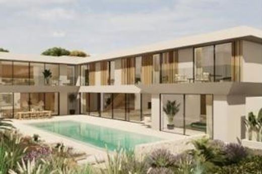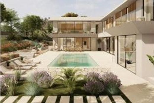 This stunning newly built villa in Nova Santa Ponsa, one of the most exclusive and sought-after residential areas in the sought-after south-west of Mallorca, impresses with its unique design, which harmoniously combines Mediterranean and modern style elements. ~~The stylish property is situated on a plot of approx. 1,963 m2 and offers a spacious living area of approx. 967 m2, which is distributed over 3 light-flooded floors, all of which are easily accessible via a lift. ~~The villa offers the highest level of living comfort, including an open-plan designer kitchen, which is complemented by a closed, professionally equipped second kitchen. ~The property also comprises a spacious living and dining room with fireplace, 7 beautiful bedrooms, 8 bathrooms, 7 of which are en suite, a utility room and a storage room. ~~The high-quality fittings, a fantastic wellness area and a double garage complete this offer. The elegant outdoor area impresses with a covered terrace, a swimming pool (pre-installation for pool heating available), further covered seating areas, an inviting garden and an outdoor kitchen with barbecue facilities.~Santa Ponsa is located in the exclusive southwest of Mallorca and is considered one of the most desirable locations on the island. It is a 20 minute drive from Palma and boasts three golf courses, professional tennis courts, picturesque beaches, a historic marina and one of the most modern ports in the Mediterranean.~