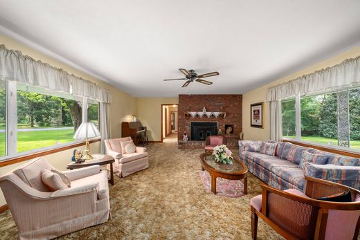 This large single-level brick rancher has been well-loved and offers plenty of room to make your own. With good bones and a classic layout, the home features 4 bedrooms and 2.5 baths, including an oversized primary suite that provides both comfort and privacy. The spacious family room is ideal for gatherings, while the living room boasts a cozy wood-burning stove set in the fireplace—perfect for chilly evenings. Hardwood floors lie beneath the carpet in the hallway and three bedrooms, ready to be uncovered and enjoyed. Outside, the property backs directly to the lake, offering peaceful views and a setting where geese love to gather. With timeless character, generous space, and a prime location, this home is ready for its next chapter.