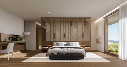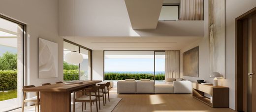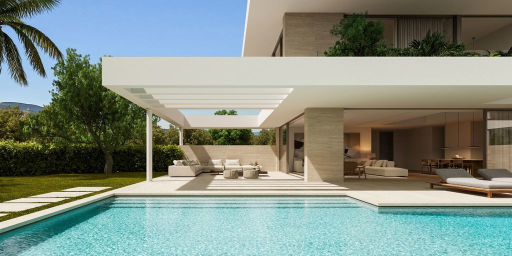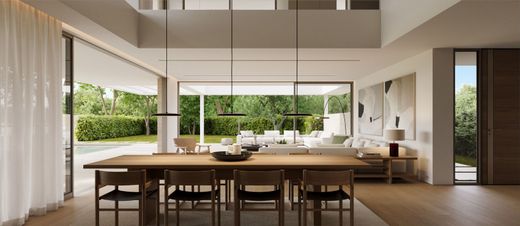 The ground floor features an elegant open plan living and dining area with a contemporary kitchen, seamlessly connected to the outdoor spaces. Large openings lead directly to the lush garden and the impressive 60 sq.m. private swimming pool, creating the perfect setting for relaxation and entertaining. The first floor hosts three spacious master bedrooms, each with its own en suite bathroom and generous wardrobes. The lower level offers a versatile living area or playroom, complemented by an additional master bedroom, ideal for guests or family living.