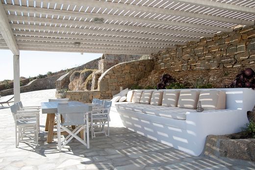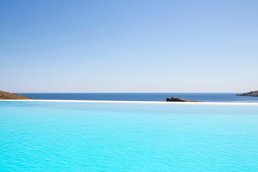 Crafted with reverence for the landscape, the villa nestles into a hillside on a private 12,000 sq.m. estate, its whitewashed volumes and hand-laid stonework echoing the ancient forms of the island. Every angle of the 320 sq.m. residence frames the vast horizon — where sea and sky dissolve into each other in endless, dreamlike blue.