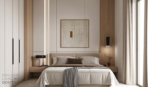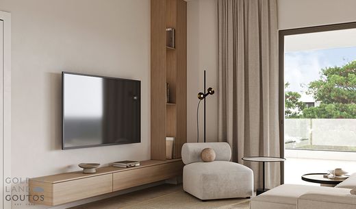 Third-floor whole-floor apartment of 87 sq.m. for sale in Voula, located on a 500 sq.m. plot and currently under construction with delivery expected in 2025. The residence includes two bedrooms (one of which is a master with walk-in closet), one bathroom, one WC, a spacious and bright living room with open-plan kitchen, along with one underground parking space and a storage room.