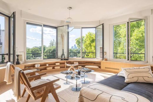 Completely renovated with high-end amenities, this sun-drenched apartment offers unobstructed views of the Bois de Boulogne and Avenue Foch.