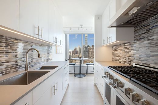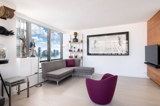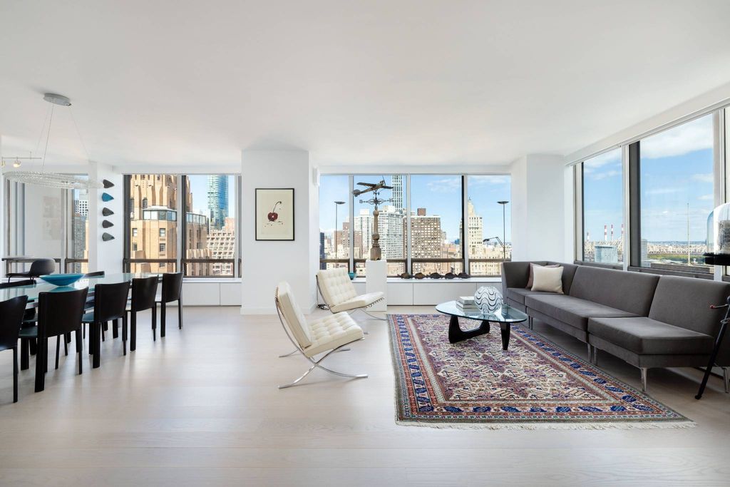 Residence 25B — A Masterpiece in the Sky at 860 United Nations Plaza. Redefining Manhattan luxury, Residence 25B is a flawlessly reimagined 3-bedroom, 3.5-bath cooperative boasting over 2,200 square feet at the iconic 860 United Nations Plaza. Conceived by the renowned architects Harrison & Abramovitz, this legendary address remains a global symbol of refinement, discretion, and prestige. Soaring above the East River, this corner residence is encased in floor-to-ceiling glass, capturing breathtaking, uninterrupted panoramas of the river, skyline, and city beyond. Every inch of the home has been meticulously redesigned with uncompromising craftsmanship, modern sophistication, and luxurious detail. A stately entrance gallery sets the stage, unfolding into a grand living room bathed in natural light and framed by mesmerizing river vistas—a dramatic setting suited for lavish entertaining or quiet daily living. The adjacent formal dining room, equally gracious, flows seamlessly into the custom eat-in chef’s kitchen. Outfitted with Sub-Zero, Miele, and Dacor appliances, a Bisazza tile backsplash, and striking Dekton countertops, this culinary haven features abundant cabinetry, a large pantry, and a sunlit breakfast area perfectly positioned to overlook the East River. For connoisseurs, a discreet wine fridge and bar area—easily convertible into a full wet bar—enhance the entertaining experience. The serene primary suite is a sanctuary of luxury, complete with three custom closets, floor-to-ceiling windows, and a spa-inspired bath adorned with multicolored ocean glass tiles, a dual vanity, and indulgent fixtures. A washer/dryer is conveniently located within the suite. A thoughtful split-bedroom layout ensures privacy, with two additional bedrooms—each featuring an en suite bath and generous closet space—set apart from the primary wing. Enhancing the modern lifestyle, the home is equipped with smart features including motorized shades throughout and a Nest climate control system. A beautifully appointed powder room off the entry completes the residence. 860 United Nations Plaza offers an unparalleled level of service and amenities befitting its reputation as one of Manhattan’s most distinguished cooperatives. A private, gated driveway ushers residents into a magnificent triple-height lobby staffed by 24-hour doormen, concierge, and valet. Amenities include a brand-new fitness center and Pilates studio, the Residents’ Club 39 with private lounge and catering kitchen, two conference rooms, a golf simulator, billiards room, in-house dry cleaning, rooftop sundecks, and garage. Pied-à-terres, pets, trusts, and international purchasers with qualifying U.S.-based assets are welcome. 3% flip tax paid by purchaser.