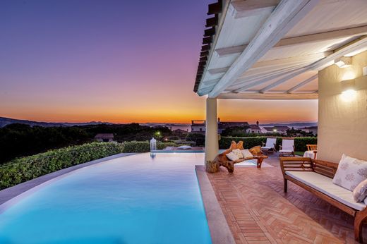 Prestigious Villa with Pool and Breathtaking View in Cala del Faro – Porto Cervo In the heart of the exclusive Costa Smeralda, in one of the most enchanting and sought-after locations, we offer for sale a refined villa of approximately 200 sq m, completely renovated with high-quality materials and finishes. The property is located in Cala del Faro, just minutes from the renowned Porto Cervo Marina, and enjoys a unique and privileged position, at the head of a terrace with triple exposure to the east, south, and west. This feature makes the property one of the most private and panoramic residences in the entire consortium, with evocative views that range across the crystal-clear sea, all the way to the La Maddalena Archipelago and, in the background, Corsica. Dreamy Exteriors The property is surrounded by a well-kept garden with an English lawn, adorned with typical Mediterranean plants and flowers. At the center stands a splendid infinity pool with a whirlpool, perfect for relaxing in complete privacy. Several verandas, pergolas, and a large panoramic terrace allow you to fully enjoy the outdoor spaces, offering spectacular sunsets and views of incomparable beauty. Elegant and functional interiors The interiors, designed in the unmistakable style of the Costa Smeralda, combine refinement and functionality. The living area opens onto a bright living room with an open kitchen, featuring large windows that frame the sea and let in natural light at all times of the day. A welcoming entrance and a guest bathroom complete this area. The sleeping area comprises three bedrooms, all carefully designed down to the smallest detail: The master bedroom, with a private patio and en suite bathroom, offers an intimate and comfortable atmosphere. The second bedroom, also with an en suite bathroom and a splendid sea view, is perfect for guests or family members. The third bedroom, with an external bathroom, provides additional space and versatility. Quality and modern comforts The recent renovation was entrusted to local master craftsmen, who have enhanced every room with the highest-quality materials and refined finishes. The spaces have been optimized for maximum comfort, with modern and efficient systems: plumbing, air conditioning, intrusion detection system, satellite TV and CCTV. A laundry room, utility rooms, and a convenient reserved uncovered parking space are also included. Exclusive Consortium Services Buying a property in Cala del Faro means access to a series of exclusive services offered by the consortium: Two private beaches equipped with sun loungers and umbrellas Bar and restaurant service Kids' club and sports areas Shuttle service to and from the beach Care and maintenance of private and shared gardens 24-hour security and concierge service Mail reception, Wi-Fi in common areas, a small supermarket, and a beauty salon. A prestigious investment. This property represents not only an ideal residence for living and fully enjoying the Costa Smeralda, but also a high-end investment in one of Italy's most solid and prestigious real estate markets. The combination of location, privacy, amenities, and quality construction makes it an unrivaled proposition. ðŸ'‰ If you're looking for a luxury villa, ready to move into and capable of exciting you every day with postcard-perfect views, this villa in Cala del Faro is the perfect solution. Contact us for more information and to arrange a private viewing.