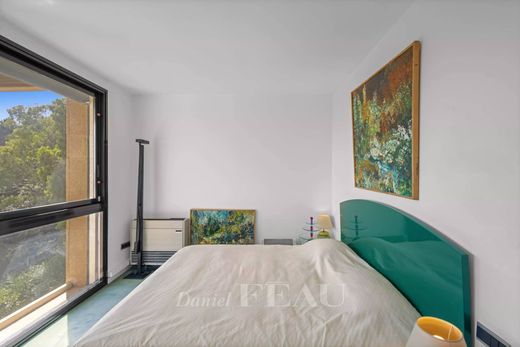 Benefiting from a south-facing 24.20 sqm terrace commanding an open sea view, it includes a living/reception room and dining room, an equipped kitchen, a bedroom, a marble-tiled shower room, a second bedroom with a shower room. Fitted storage space.