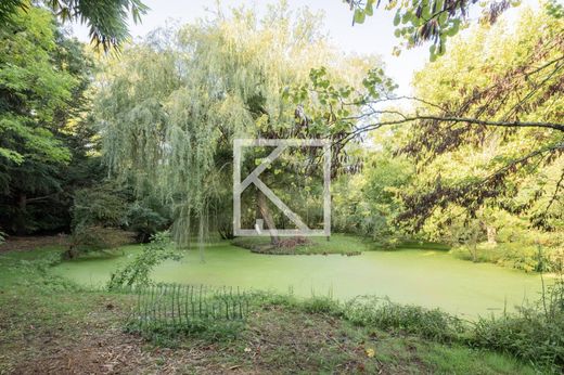 Exceptional landscaped grounds in the heart of the village, a veritable green setting featuring a French-style garden, a pond with an island, and a perfectly integrated new swimming pool, offering an intimate and poetic setting with no overlooked views.