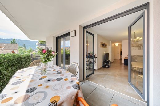 The agency on the roofs presents exclusively 'L'origami' Apartment T4 Annecy, Pont Neuf district Recent residence from 2018 - Double garage possible in addition. In the immediate vicinity of shops and the beautiful Thiou promenade, discover this beautiful T4 apartment of 81m2 located in a well-maintained condominium with elevator. The apartment is functional and well-appointed. It consists of an entrance hall, a separate toilet, three bedrooms of 9.3m2, 12m2 and 11.95m2, including a master suite with shower room. A separate bathroom completes the sleeping area. One of the bedrooms has direct access to a pleasant terrace. The living room is spacious with a living room opening onto the 21m2 corner terrace, and a beautiful open kitchen is fully equipped. The property is sold with a cellar. A large double garage in a row is possible in addition to the price. Several bicycle spaces have been provided to make your daily life easier. Ideal for a primary residence project or a worry-free investment. Visit without delay! You will love the location with access to the highway just a few minutes away, the proximity of schools, and access to the center of Annecy in 10 minutes via the Thiou promenade. DPE: C