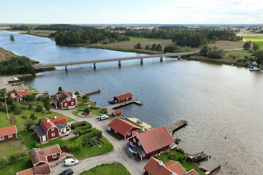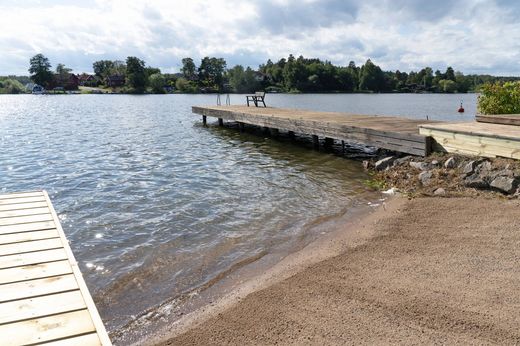 Lakeside Idyll in Björsund with Private Waterfront and Jetty Charming 19th-century villa and separate outbuilding in a scenic waterfront setting at Björsundet, Lake Mälaren. Includes a separate building suitable as an office or self-contained apartment. Large newly built jetty facility and sandy beach. This historic waterfront property features traditional red-painted houses with white trim, located right by the water and next to the newly constructed jetty with its own sandy beach. Both houses offer striking panoramic views of the water, just three meters away. The main house dates back to the 1800s and is the oldest building in Björsund. For many years, it housed the local laundry, and the original washing vessel with an integrated fireplace for heating is still preserved in the villa’s kitchen. The main residence offers about 160 sqm of living space across two floors and five rooms, of which four are bedrooms. Upstairs you’ll find a welcoming family room with beautiful exposed beams that create a rustic atmosphere. There are three bright and cozy bedrooms with light floors, as well as two charming lofts—ideal for overnight guests, storage, or as extra play areas. The largest bedroom includes two built-in wardrobes, with additional storage in the eaves. A WC with tiled floor is also found on this level. The entrance floor serves as the social heart of the home, featuring a spacious living and dining area in an open-plan layout. Newly laid oak floors and generous windows create a bright and inviting atmosphere. From here, you step directly out onto the terrace and down to the jetty. This floor also has an additional bedroom, perfect as a guest or children’s room. A modern fully tiled bathroom with underfloor heating and spotlights includes a shower, bathtub, WC, vanity, and heated towel rail. The entrance hall is both spacious and practical with tiled flooring and sliding-door wardrobes. The laundry room is well-equipped with two sets of washing machines and dryers, along with ample storage. The large and bright kitchen features oak flooring, oven, induction hob, and two tall fridge-freezer units. Heating is provided by a heat pump. The garden measures 789 sqm, with a level lawn. On the property there is also a detached house of about 60 sqm, currently fitted as two separate office spaces, each with its own entrance. Electricity is connected, and water/sewage is prepped nearby, offering many possibilities for conversion into a guesthouse, rental apartment, studio, or workshop. The location combines country tranquility with convenient access to services. In nearby Kjula, Sundbyholm, and Fogdö you’ll find grocery stores and restaurants. For a wider range of amenities, it’s only a short drive to Eskilstuna, Strängnäs, or Västerås. Local buses connect to Strängnäs travel center, where trains and buses provide access to the entire Mälardalen region. This is a home for those seeking more than just a residence—a place to live, work, and enjoy life. Warmly welcome!