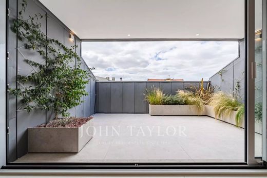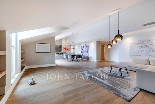 The open-plan layout, highlighted by large sliding windows, brings abundant natural light and creates a bright, welcoming atmosphere. A private terrace with outdoor lighting provides panoramic views over the city and the 25th of April Bridge.
