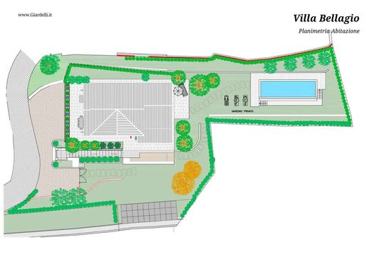 On top of a panoramic hill, inside the exclusive "Residenza Il Poggio", stands a newly built villa that offers a charming view of Lake Como and the picturesque village of Bellagio.