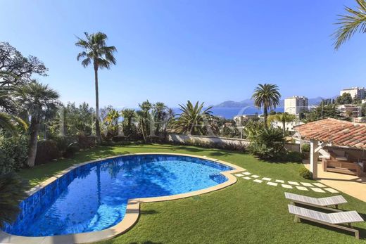 Superb charming villa in a contemporary style, located on the heights of Cannes offering heated interior pool and 6 bedrooms , 7 bathrooms.