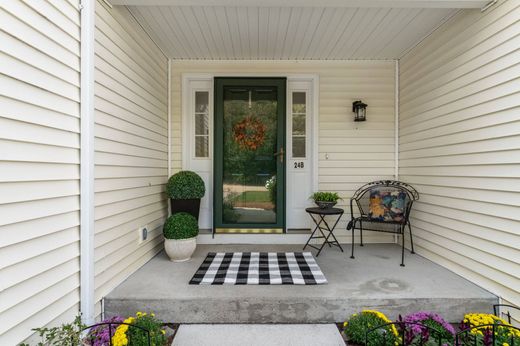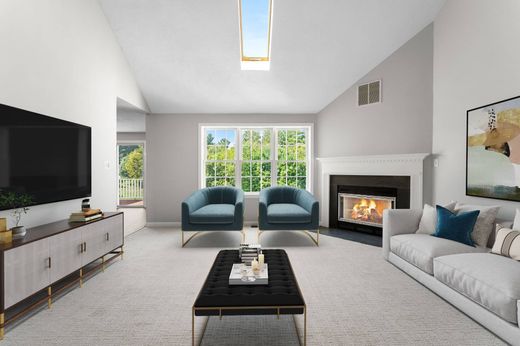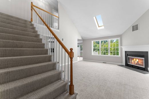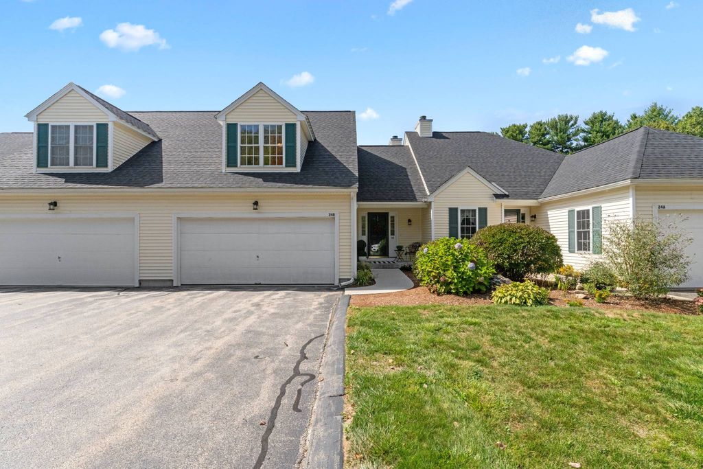 Unbeatable bright and sunny townhouse with no age restrictions in sought-after Woodbury Heights, tucked away with privacy and walking trails yet minutes to major routes, shopping, and dining! Soaring vaulted living room with gas fireplace drenched in natural light. A cabinet-packed kitchen with new stainless appliances flows into the dining room, perfect for family meals or entertaining. Updated powder room equipped with washer/dryer round out the main level. Step out onto your private deck with serene views of open fields and woods. Upstairs, two spacious bedrooms share a full bath; downstairs, a walkout basement with high ceilings and full windows awaits your finishing touch. Two car garage with landscaping and snow removal included, you'll stay warm in front of the fire all Winter! Generous storage space throughout. Enjoy efficient gas heat, central air, and a well-kept, quiet community in charming Sutton. Opportunities like this don’t last—see it today!