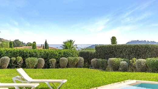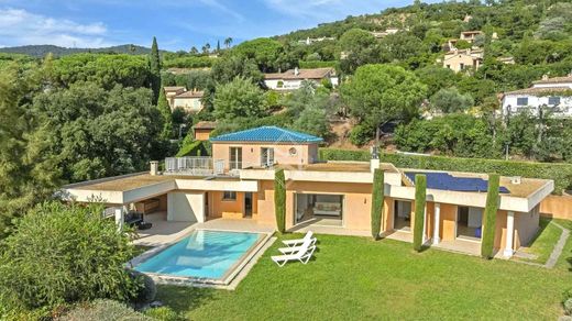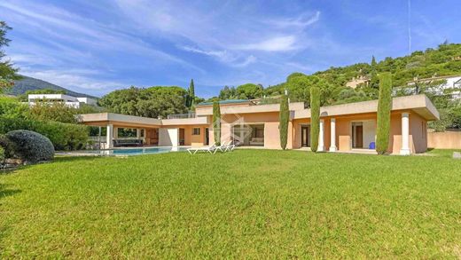 Nestled in a peaceful and privileged environment in Cavalaire-sur-Mer, within a secure and gated estate close to the beach, this South-West facing architect-designed villa combines elegance, space, and light, with beautiful open views and glimpses of the Mediterranean.