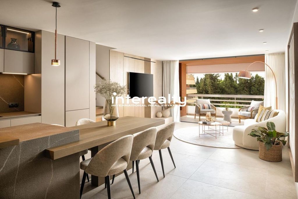 A unique duplex penthouse situated in the lively centre of Marbella and is only a pleasant three-minute stroll from the beach. This fully furnished property, which spans 300 square meters and features three bedrooms and three perfectly finely finished bathrooms, is a craftwork of detail and finest quality of materials.