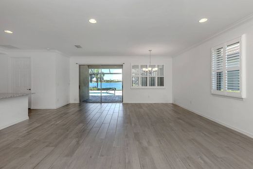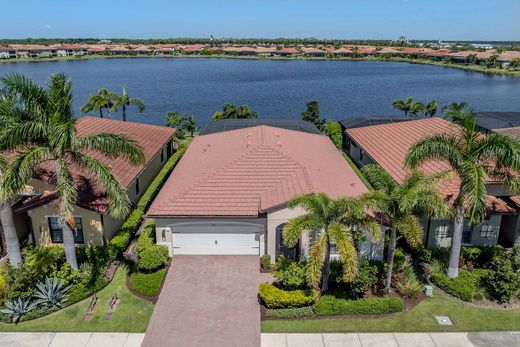 One or more photo(s) has been virtually staged. Welcome to this inviting residence that perfectly balances design, comfort and functionality. From the moment you enter the stylish interior you're instantly welcomed by a sense of home. Wood-look porcelain tile flooring in the living areas add warmth and texture, combining the charm of natural wood with durable tile. Bright and open with an efficient layout, the kitchen showcases white cabinetry with beautiful counters, a large center island, pantry and stainless steel appliances all enhancing a clean, modern aesthetic with form and function. The expansive layout flows effortlessly between the kitchen, dining and living area, perfect for everyday living or entertaining. The reimagined outdoor oasis, revolving around the heated pool, has been expanded with a new paver decking. New clear view screens provide unobstructed water views while the upgraded landscaping retains privacy. The spacious primary suite is complete with a walk-in closet, dual vanities, and a large shower. The second bedroom and bath offers privacy for family and guests while a dedicated office space boasts French doors. Additional enhancements include plantation shutters, crown molding, ceiling fans, a Culligan water conditioning system, ultraviolet light for the AC unit, an epoxy garage floor, and a front entry enclosure. Toscana Isles delivers true resort-style living. Enjoy over 200 acres of lakes perfect for kayaking, paddleboarding, fishing and more. The Tuscan-inspired clubhouse features an infinity pool, fitness center, billiards, bar, and event spaces. Outdoors, residents love tennis, bocce, a dog park and one of the area's most active pickleball programs. All this is just two miles from Sarasota Memorial Hospital, six miles from Nokomis Beach, and minutes to Venice Island's shops, dining and world-class Gulf sunsets.