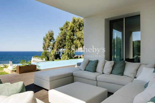 The modern, functional kitchen overlooks a covered patio, ideal for outdoor lunches and dinners. The garden includes an outdoor dining area, immersed in the colors and tranquility of the Mediterranean landscape. The sleeping area has been designed to host family and friends: it features 8 bedrooms, each with an en-suite bathroom to ensure both comfort and privacy, as well as an additional guest bathroom on the ground floor.