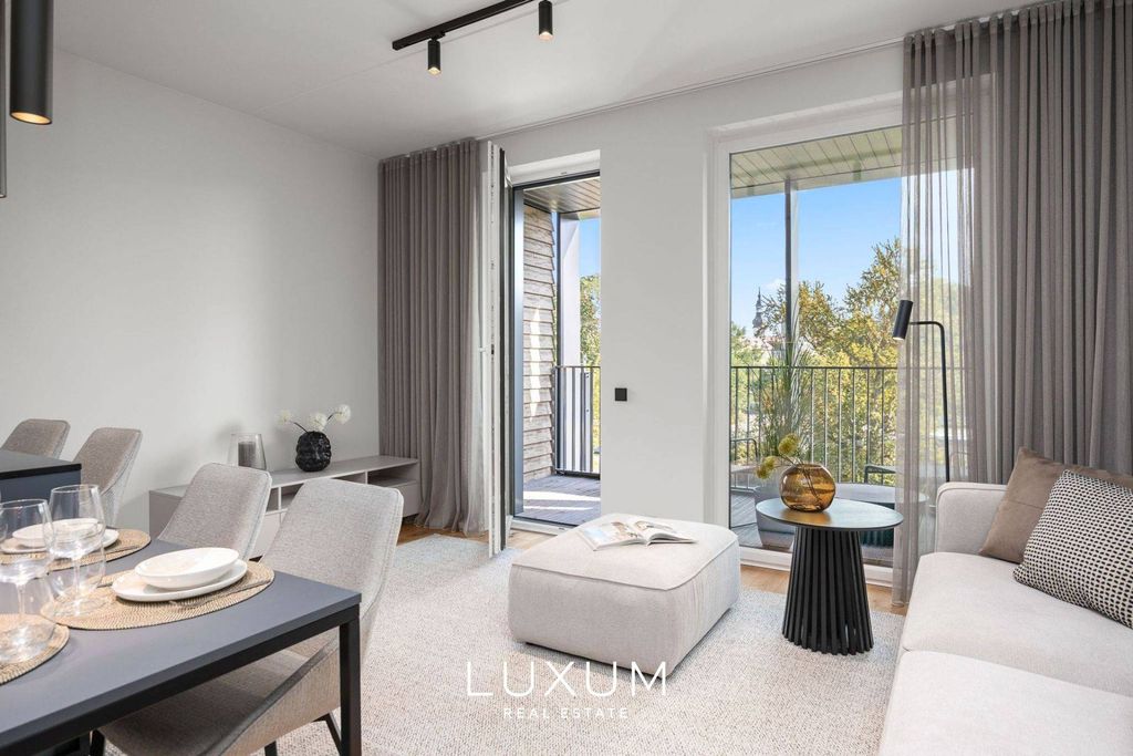 This 3-room apartment offers true quality and comfort. Large windows, high ceilings, and a bright living area with access to the balcony provide an airy and inviting atmosphere. The nearly 8 m² balcony offers beautiful views of Tallinn’s Old Town towers.