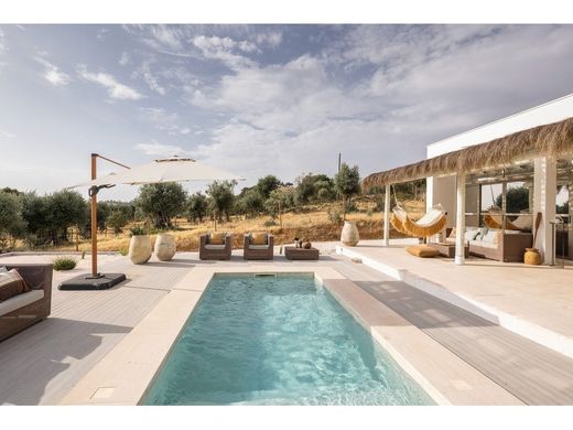 This wonderful farm is a newly built equestrian estate in Arraiolos, Alentejo, offering 2.7 hectares of private grounds with modern living and professional horse facilities. The single-level villa measures 273 m2 and includes an open-plan living and dining area of 150 m2 with Moleanos stone floors, a fully fitted designer kitchen, and three suites—two large masters with dressing rooms and bathrooms plus a guest suite. Energy Class A. Purpose-built in 2025, the estate is designed for equestrian excellence. It includes a 37 × 7 m stable block with three oversized boxes, a bespoke tack room, wash/groom bays, LED lighting, and a misting system. The professional 55 × 21 m Ebb & Flow arena features treated wood fencing and full lighting for evening training. Paddocks with secure PVC fencing and water are set among more than 350 century-old olive trees, with room to expand facilities further. The landscaped grounds include a natural stone pool (3 × 6 m) with ceramic deck, shaded terrace with pergola, bespoke firepit, and multiple outdoor seating areas. The estate is fully fenced for privacy and security. Sustainability and modern comfort are central to the design, with 8 solar panels producing up to 15 kW/day, two licensed wells and drip irrigation, fiber internet, video surveillance, automated gates, fan coil heating and cooling, and a renovated roof. The location combines privacy with accessibility. The property offers open views to the Castle of Arraiolos while remaining close to key services: Arraiolos Clinic (1.1 km), Évora (28 km), Lisbon Airport (±50 min), and the future TGV station (20 km). The White Farm is a rare, ready-to-use equestrian estate in a desirable region of Portugal, with potential for private use, agritourism, or equestrian events.