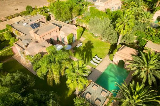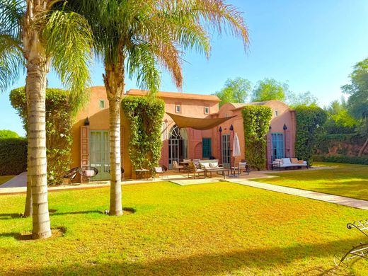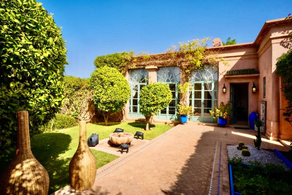 Ideally located within a private estate, architect-designed villa signed by Charles Boccara, close to the Ouarzazate Road The Morocco Sotheby’s International Realty Agency, in Marrakech, is pleased to present this contemporary villa of 300 m², built on a landscaped plot of 1.200 m² within a secure estate, fifteen minutes from the Royal Golf. The work of the renowned architect Charles Boccara, the property combines the elegance of Moroccan architecture with modern comfort. Entirely on one level, it consists of four suites with private bathrooms, refined with artisanal finishes, all opening onto a lush garden. The volumes are balanced, bright, and adorned with noble materials, creating a warm and serene atmosphere. The reception areas feature a spacious living room with a fireplace and a convivial dining room that opens onto the outdoors. Hidden from view, the heated pool and its shaded terraces invite relaxation throughout the year. The residents of the estate benefit from exclusive facilities, including a clubhouse, spa, and clay tennis court. A rare and sought-after address, ideal for lovers of elegance and tranquilly. Other: 3.000l water tank, Solar panels, Split heating & air conditioning. Leaving Marrakech to the East, this road runs alongside the Royal Golf Course and several residential and golf complexes. This road allows you to cross the High Atlas via the famous Tichka Pass. For more information, you can contact Laurent Galès +212 6 21 34 48 21.