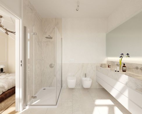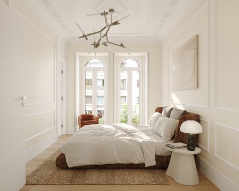 The Bombarda 54 development is a unique project comprising 14 one- and two-bedroom apartments. It combines high-quality finishes with the preservation of original 1920s details, such as high ceilings and decorative plasterwork, typical of the period.