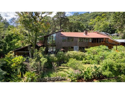 Located in the sought-after Jaboncillos area of Escazu, this standalone residence is more than a homeit is a retreat with soul, thoughtfully designed to blend comfort, inspiration, and a deep connection to nature. From the moment you arrive, the experience is captivating. A double-leaf wooden gate opens to a spacious parking area accommodating up to eight vehicles outdoors and three under cover. The main entrance leads up slate stone steps to a welcoming terrace, where a handcrafted wooden door with bronze accents marks the entry to the foyer. Here, a large window frames a front garden designed to attract butterflies and hummingbirds, offering a preview of the natural harmony that defines the property.
