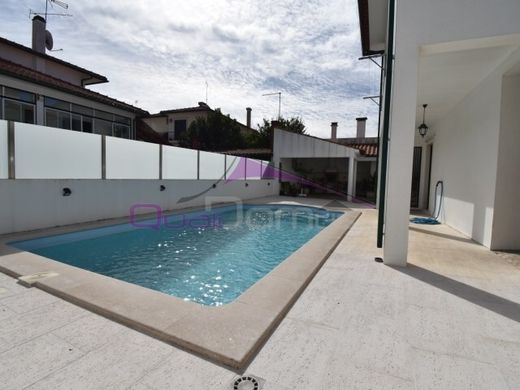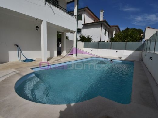 No exterior, a propriedade tem piscina de água salgada, telheiro com churrasqueira, uma casa de banho de apoio e pátio. O acesso à garagem em cave faz-se lateralmente e também pelo interior, permitindo o estacionamento de, pelo menos, quatro automóveis.