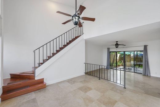 Experience the remarkable location of this updated townhome, offering 1,648 sf of living space. You are greeted indoors by travertine marble flooring and high ceilings that allow an abundance of natural light to flow through the numerous windows. The kitchen is equipped with granite countertops, wooden cabinets, and modern stainless steel appliances. The downstairs features a spacious bedroom, an updated full bath, ample closet space, and washer/dryer. The second floor is dedicated to the primary suite, including an ensuite bath with a soaking tub and a generous walk-in closet. Fenced-in private yard is complete with a deck and low-maintenance turf. The pool is located next to the unit and this boutique community is within walking distance of the beach, Mizner Park, shops and restaurants.