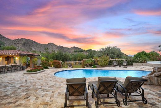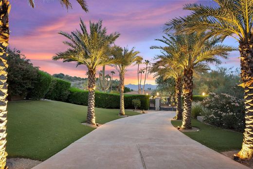 A secluded sanctuary awaits at this unparalleled compound representing the ultimate entertainment retreat in Paradise Valley. This timeless estate captures the essence of Santa Barbara grandeur. The privately gated, elevated & mostly flat 2 acre lot gives 360 degrees of captivating mountain/city light views, including fiery views of Mummy Mtn. Masterfully designed with a commercial grade kitchen, butler's pantry, 860+ bottle wine cellar, theatre room, gym, 3 fireplaces, temp-controlled 7 car garage including detached RV garage that can accommodate lifts or be used in it's current indoor golf simulator set up. Nature & luxury converge in perfect harmony outdoors that includes a heated pool, spa, 5 hole putting green, pickleball/basketball sport court. Built for those who love to entertain.