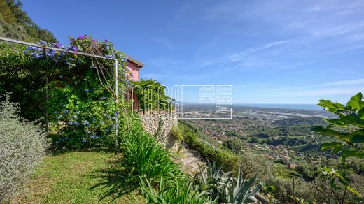 In a dominant and private location, we offer for sale a splendid villa with breathtaking sea views, stretching from Livorno to Montemarcello, nestled in the calm of the Candia hills, known for their wine production, behind the city of Massa. The property is strategically located, surrounded by nature and vineyards, yet within easy reach of both the city of Massa and the beaches of Marina di Massa, Ronchi, and Cinquale.