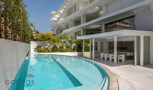This stunning maisonette for sale in Voula spans three levels—basement, ground floor, and first floor—covering a total of 361 sq.m. on a generous 744 sq.m. plot. Built in 2024, the property offers a harmonious blend of contemporary design and luxury living just 100 meters from the seaside and 19 kilometers from the airport. It features five spacious bedrooms, including four master suites, five bathrooms, one WC, two modern kitchens, and two elegant living rooms.