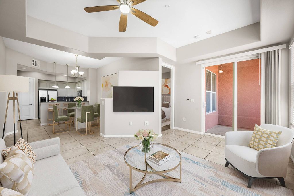 Enjoy comfort, privacy, and convenience in this inviting 2-bedroom, 2-bath home. Tucked inside a guard-gated community, this residence delivers both peace of mind and an impressive list of amenities. Enjoy two sparkling pools, a well-equipped fitness center, and BBQ areas designed for entertaining and relaxation. Inside, the open layout is practical yet inviting, creating a comfortable setting for daily routines. The primary suite provides a private retreat with its own bath, while the second bedroom adds flexibility for guests, work, or hobbies. Perfectly positioned to enjoy the vibrant Las Vegas lifestyle, from dining and entertainment to outdoor recreation, this home offers the ideal balance between leisure and livability. Whether you’re seeking a full-time residence, a seasonal getaway, or a lock-and-leave lifestyle, this home invites you to experience the best of Las Vegas living every day.