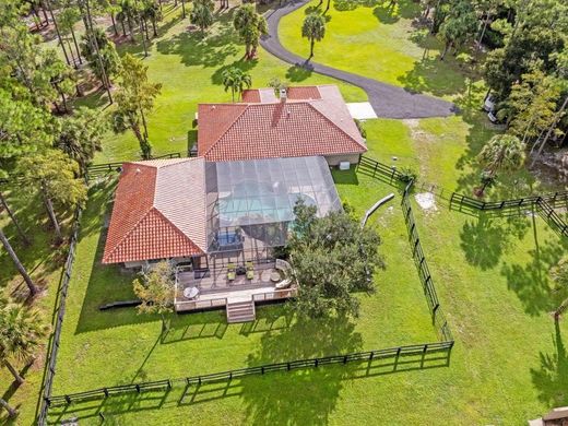 Huge Equity Opportunity-Priced Below Appraisal!!! Are you prepared to chase your equestrian aspirations? Here lies a gated equestrian estate with fully equipped guest cottage situated on 5 full acres in the desired community of Deer Run, offering all the amenities of the equestrian lifestyle complete with a luxurious swimming pool. The pool is protected by commercial-grade screening which allows you to relish summer evenings shielded from the elements. The pool features landings beneath a stunning waterfall, reminiscent of resort-style living. A newly resurfaced asphalt driveway provides a smooth approach to your home. Additionally, both houses boast a newly installed Barcelona barrel tile roof. Upon entering through the new high-end hurricane impact double doors, for warming up during those rare chilly Florida nights. Crown molding adorns every room. The kitchen is equipped with new countertops and stainless-steel appliances, ideal for crafting exquisite meals and hosting gatherings. This residence includes a full farm generator with an oversized 1500-gallon propane tank buried for convenient access. Do not underestimate the necessity of power and water in the event of an outage! The dryer and three fire pits are powered by the home propane. There is ample space to add and connect an outdoor kitchen! The main house features a split floor plan, ensuring privacy for both you and your guests. A new HVAC system installed in 2025. The property also includes a double reverse osmosis water system with a liquid peroxidation The guest house measures 1100 square feet, suitable for guests or generating additional income year-round or seasonally. Or multi-generational living. It is fully self-sufficient, equipped with impact windows. The 2022 barn features a new Bora Steel Tile barrel roof rated for 225 mph winds and includes five stalls, each 12 x 12, with matted flooring and water dispensers in every stall. Additionally, there is a tack room furnished with a washer and dryer, refrigerator, mop sink, tankless hot water heater, and feed room. The barn has four bays, one of which has hot water. Two stalls are equipped with run-out paddocks, and there is covered storage for hay.
