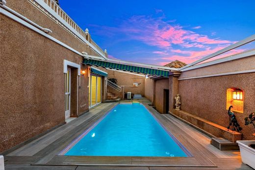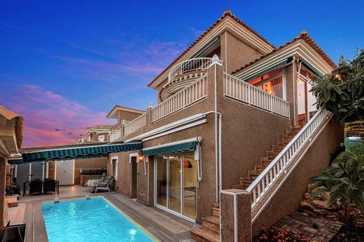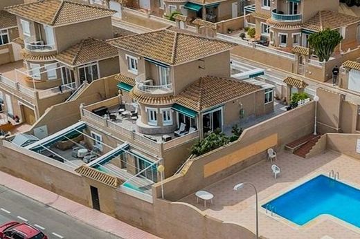 WONDERFUL VILLA ON THREE FLOORS (162 m2 + TERRACES) WITH 5 BEDROOMS, 3 BATHROOMS, LARGE TERRACES, AND LARGE PRIVATE POOL!~~Very well-kept exclusive villa in popular Los Altos, close to the hospital in Torrevieja, and about 4.5 km from Torrevieja city centre. Both school and bus stop (city buses) right next door, and only 1 km to a well-stocked Consum supermarket. The beautiful beaches of Punta Prima are only just over 2 km away. A wonderful house to live in all year round!~~KEY FEATURES:~– Very well-kept exclusive villa with private pool in popular Los Altos.~– Ground floor/semi basement (60 m2): Separate floor. Large room with glass doors facing the pool, hall, 1 bedroom and 1 living room/bedroom, 1 complete bathroom and 1 storage room. And outside, a large terrace with the private pool (approx. 7x3 m),~– Floor 1/entrance level (68 m2): Hall, large living room, dining room (glazed terrace), spacious separate kitchen (fully equipped) with access to a large laundry room, 1 spacious bedroom. And one bathroom. A large terrace around the house from northeast to northwest, and another large terrace facing southeast, accessed via the dining room.~– Floor 2 (34 m2): Hall, 1 bathroom and 2 spacious bedrooms (one with a large balcony facing southeast).~– Everything is in perfect condition, ready to move into immediately.~~OTHER ADVANTAGES:~– Well-maintained gated community with large communal pool (approx. 15 x 5.5 m).~– Parking in front of the house.~– Several modern ACs (air-heat pumps) in the house.~– Elementary school (Colegio Público Romualdo Ballester) just 100 m from the gate.~– Very good public transportation with the city buses (only 100 m to the bus stop).~– Only about 4.5 km to Torrevieja city centre and 3.5 km to the large shopping centre La Zenia Boulevard.~– Community fees: €35/month, IBI: €547/year.~~The house was originally built in 1996 and has since been rebuilt (among other things, building of the large pool) and renovated. It is in perfect condition, ready to move into immediately!~~The house is located in the Los Altos area, and the surroundings consist of villas and townhouses. It is a very popular area in Torrevieja, especially among families with children. There are several nice parks and playgrounds in the area, and within walking distance you will also find cozy restaurants, a pharmacy, and a well-stocked Consum supermarket. And the city buses run regularly into Torrevieja city centre, about 4.5 km to the north.~~And in Torrevieja, with more than 106,000 inhabitants and the third largest city in the province of Alicante, there is of course a complete range of shopping, entertainment, sports facilities, hospitals, schools, and also direct buses to Alicante airport (45 min).~~Don't miss out on this well-maintained and spacious villa. A wonderful house to live in all year round!~~Contact us today for a viewing!~