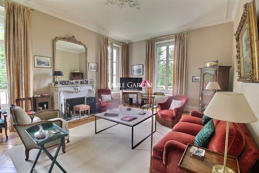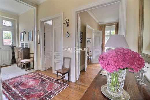 Located 65 km from Paris via the A6 or A5 motorway, and only 22 km from Fontainebleau, this large 19th-century house is in excellent condition. Not overlooked, it sits along with its outbuilding in a delightful walled garden of 3,000 sq.m. A large entrance hall, including the main staircase, leads to four beautiful reception rooms, a living room, a dining room with parquet flooring, mouldings and fireplaces, an office / bedroom, a large updated and fully equipped kitchen with dining area, a shower room, and a WC. On the first floor, you will find four bedrooms, including a master suite with bathroom and dressing room. On the second and top floors, there are four rooms with original terracotta tiling, including a workshop, two bedrooms and an attic (yet to be converted). The full basement floor is equipped with laundry room, cellars and boiler room. Outside, there are former stables of approximately 80 sq.m overlooking a charming paved courtyard. This outbuilding contains a garage, a workshop and a large room upstairs, making it ideal as accommodation for a caretaker or as a private apartment (terracotta tiling, water supply). It all sits on a delightful landscaped garden, entirely enclosed by walls and equipped with a well and a woodshed. Perfect for a second home or main residence, this property is located in the heart of a renowned vibrant shopping village, much sought after for its rolling countryside and cultural attractions.