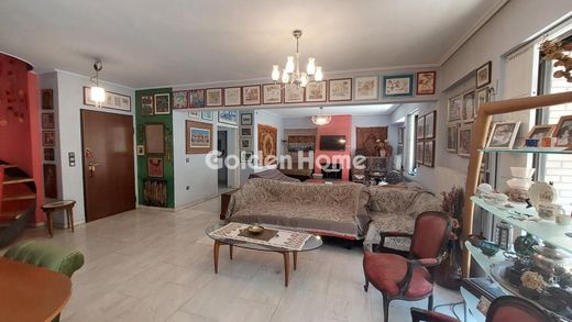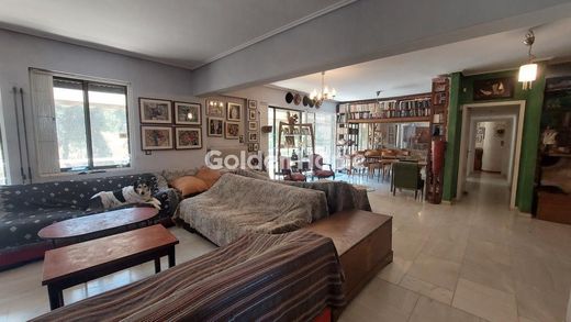 Privileged 198 sq m, 3rd floor apartment in an idyllic location at the foot of Lycabettus. It has, on one level, four bedrooms, a large living room, a separate kitchen, two bathrooms, a WC, a storage room inside the apartment that can be converted into a second WC and an additional underground storage room. Bright, spacious, quiet and airy, with an additional attic connected to the apartment by an internal staircase and a private terrace of 180 sq m, with an unlimited panoramic view of Athens and the green forest of the hill. There is oil central heating, possibility of installing natural gas, large balconies, two parking spaces, fireplace, two solar panels and two security doors. Possibility of dividing into two apartments.