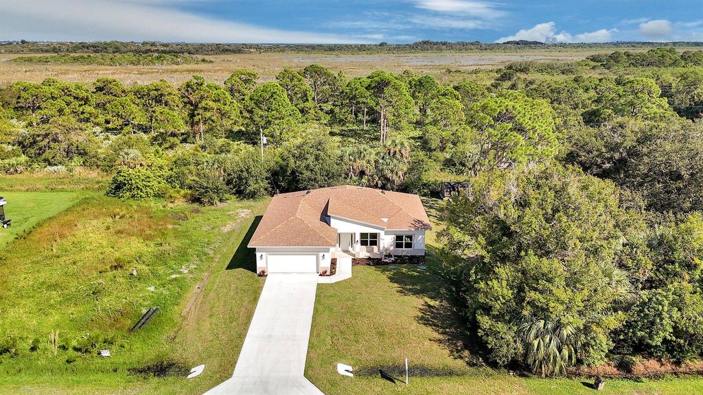 Custom new construction, quality materials, built to last! This concrete block 4-bed, 2-bath, 2-car garage home offers 2,250 sq ft of thoughtfully designed living space with a modern split floor plan. The kitchen is a true showpiece -- featuring a large island, white shaker soft-close cabinetry, granite counters, and stainless steel appliances -- perfect for entertaining or casual family meals.Luxury vinyl plank flooring flows throughout, complementing the hurricane-impact PGT windows and doors for beauty and peace of mind. The primary suite offers dual walk-in closets and a spacious en-suite bath with his & hers vanities and a walk-in shower.The Savannahs Nature preserve located DIRECTLY BEHIND YOU! Minutes from the beach and the I-95 Interstate. LOT NEXT DOOR AVAILABLE AS PACKAGE DEAL