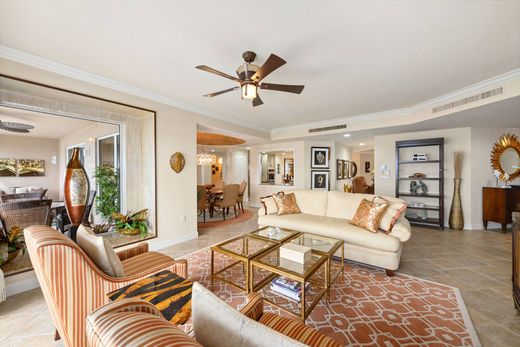 Incredible sunsets and vistas of the shimmering Estero Bay and Gulf are visible from this exceptional high-rise property with three en-suite bedrooms. Features include floor to ceiling windows, tray ceilings, crown moldings and special designer finishes throughout. The updated kitchen is centrally offering sunrise and sunset views and includes upscale appliances, custom self-closing cabinets, granite counters, pantry and wine cooler. Living, dining and family rooms surround the kitchen, and offer informal and formal areas for entertaining family and guests as well as beautiful views. Every room has access to a terrace. The spacious primary suite with private balcony offers breathtaking water views. Adjacent spa-like baths include large soaking tub, spacious shower and dual vanities. Two walk-in closets with custom cabinetry provide ample space for personal items and storage. Split bedroom plan offers plenty of privacy for owners and guests. Bedroom #2 offers a vibrant view of the Bay Island golf course and includes access to a covered lanai. The third en-suite bedroom is used as an office with substantial built-ins. This home has been professionally decorated and lovingly maintained. New air-conditioning system installed in May 2025. Sonos Sound System throughout and for your safety, there are motorized hurricane shutters on all sliding doors and windows. Estancia amenities include designer furnished club room with bar and catering kitchen, card room, fitness center, pool, spa, outdoor gas grills, guest suites and resident manager. Residents also have access to Bonita Bay amenities including three waterfront parks, private beach park, 12 miles of hiking and biking trails, canoeing, pickleball, tennis, bocce ball and a host of social activities.