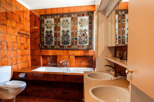 The building spans four levels and consists of the main house with 5.5 rooms and a separate entrance guest house (dépendance) with 2.5 rooms, ideal for visitors. The main house features three bedrooms, a large living room with fireplace, two full bathrooms, a guest bathroom, and a dining room with kitchen.