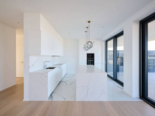 Ideally located in the heart of the Toison d'Or district, close to luxury boutiques and Egmont Park, this apartment offers a gross floor area of ± 200 m² (EPC) and three bedrooms, as well as two large terraces of ± 75 m². This new apartment, located on the seventh floor of the "Cond'Or" residence, opens onto an entrance hall with a cloakroom and guest toilet and leads to the living areas bathed in light thanks to large bay windows offering a unique and unobstructed view of Brussels. The space consists of a spacious living area extended by a dining room, a fully equipped open-plan kitchen with a central island, and access to a first west-facing terrace. The sleeping area features the master bedroom with a separate dressing room, private bathroom, and access to the south/east-facing rear terrace, two further bedrooms with dressing rooms and private shower rooms, also benefiting from access to the rear terrace, and a third bedroom with a dressing room. Other features: reinforced door, underfloor heating, dual-flow ventilation, cellar, bicycle storage, four optional parking spaces available for rent, common charges € 500. EPC: B The Toison d'Or district is known for its designer stores and its proximity to the city center. Just steps from cinemas, restaurants, and public transportation, it is ideally located between the city center and Avenue Louise. For further information, please contact Laurence Ballaux at +32 (0) 2 640 08 01.