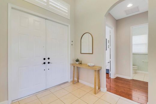 LAKESIDE LOCATION in PGA Village! This lovely 3BDRM/2.5BA/2CG home is being offered fully furnished/turnkey for an annual lease. A few of the many features of this special home include spacious floorplan, solid surface flooring throughout, kitchen w/ white cabinets, granite counters, SS appliances and charming breakfast nook overlooking the lake! Primary Suite also has lake views and a private ensuite w/ dual vanities, walk-in shower & soaker tub. Two walk-in closets! Two additional bedrooms share a full guest bath off the hall plus a half bath! Enjoy your morning coffee while taking in the serene lake views from the covered/screened lanai! Walking distance to the 'Island Club' featuring resort style pool, fitness facility, games room, pickleball, tennis and much more! Call today!